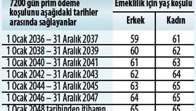 Bu tarihten sonra ilk defa sigortalı olanlar 31 aralık 2035 e kadar en az 7200 gün prim ödemiş olmak koşuluyla.
