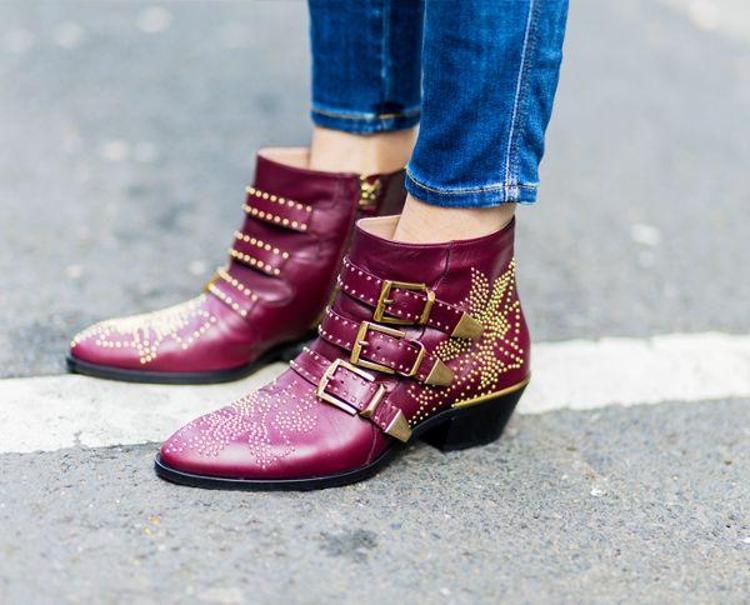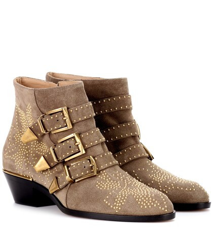 Chloe susanna bot. The feminine silhouette is adorned with polished gold tone studs and is cut low on the ankle perfect for styling with cropped jeans or maxi skirts. I think they are the most beautiful shoes that ever existed. Golden studs pepper an iconic belted bootie with elevated western appeal. Channel chloé s glam rock attitude with the contemporary susanna boots.