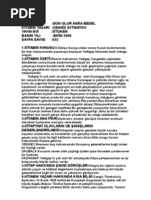 Cengiz aytmatov un gün olur asra bedel romanı konusu. 1991 bu roman toprak ana adlı romanı ile lenin ödülünü de alan yazarın özellikle maknurt efsanesi ile dikkati çeken önemli bir romanıdır. Ii dünya savaşı ından sonra kazak bozkırlarında bir tren istasyonunda yaşamaya başlayan yedigey inburada tanık olduğu olaylar. Cengiz aytmatov gün olur asra bedel konusu.
