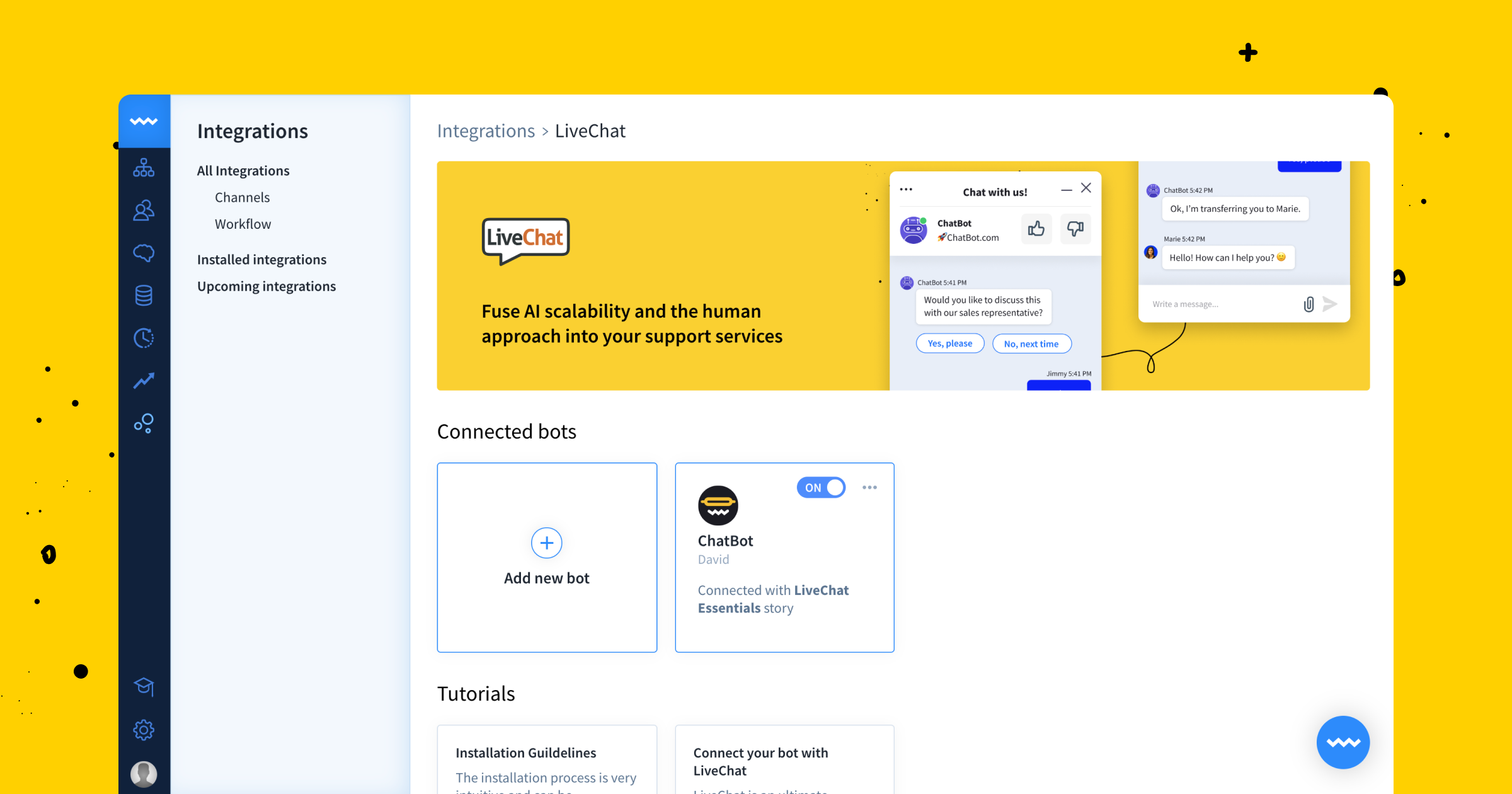 Live chat bot. Qualify leads book meetings support customers and more all with bots. Use bots to automate and scale your live chat conversations. Have a chat with jabberwacky today a fully conversant amusing bot it s a chatbot an artificial intelligence ai bot. Build your own customer support with a multi channel platform for web android and ios.