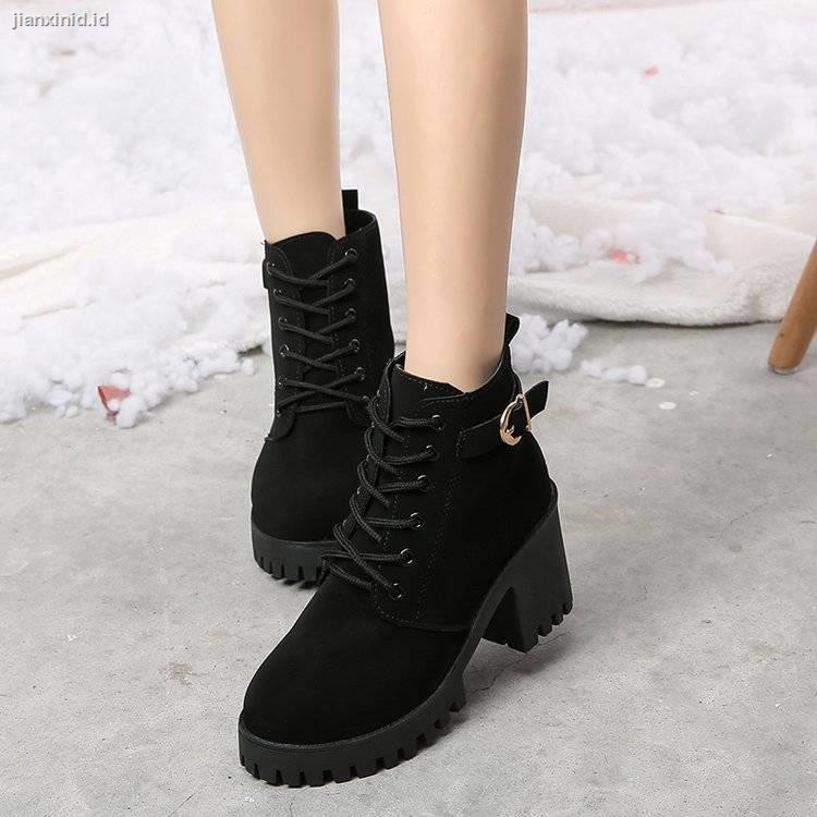 sepatu bot hak tinggi untuk wanita sepatu bot pendek sepatu platform renda sepatu pelajar sepatu wanita modis tebal bertali