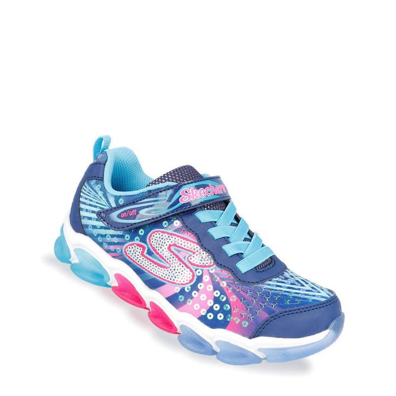 Skechers galaxy lights bot. Largest sports and fashion collection. Fast delivery or pick up in stores. Athletic mesh fabric and smooth synthetic upper in a one strap front light up sporty sneaker with multi color star light up midsole. Wish on a shooting star with fun light up style in the skechers s lights.