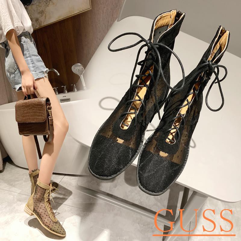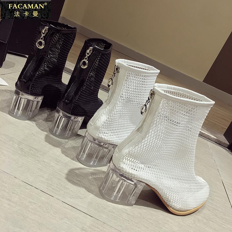 fujin 2020 baru kedatangan transparan hujan boots wanita tahan air sepatu bot sepatu air jelly sepatu renda up pergelangan kaki sepatu bot